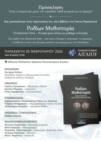 Τοπικά Νέα Ροδίων Μυθιστορία – Παρουσίαση του νέου βιβλίου του Γιάννη Παρασκευά 17 Φεβρουαρίου 2026 19:24