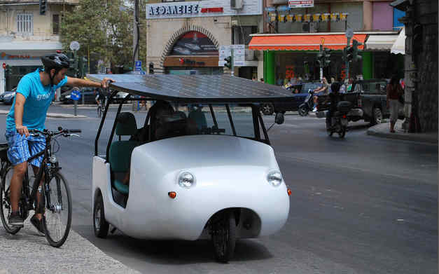 Στους γραφικούς δρόμους της Σαντορίνης έκανε την εμφάνιση του το ελληνικό ηλεκτροκίνητο όχημα «Sunnyclist» που έκανε το απαραίτητο test drive στο νησί.