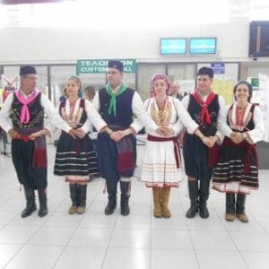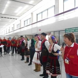 Η Φιλαρμονική του Δήμου Ρόδου έπαιζε μουσική ενώ τα μέλη του Μουσικοχορευτικού Συγκροτήματος Κρεμαστής «Χορευτές του Αιγαίου» ντυμένοι με παραδοσιακές φορεσιές παρουσίασαν παραδοσιακούς χορούς της Ρόδου και μοίραζαν το παραδοσιακό ροδίτικο μελεκούνι στους τουρίστες που ήταν χορηγία της Περιφέρειας Νοτίου Αιγαίου. Επίσης μοιράστηκαν χάρτες της Ρόδου στους επισκέπτες και ως δώρα δύο συσκευασίες που περιείχαν ρίγανη και τσάι του βουνού, προσφορά του Εμπορικού και Βιομηχανικού Επιμελητηρίου Δωδεκανήσου. Το κλίμα μέσα στην αίθουσα αφίξεων ήταν χαρούμενο και γιορτινό και οι Αυστριακοί επισκέπτες της Ρόδου δήλωσαν κατενθουσιασμένοι και συγκινημένοι από την πρωτοβουλία αυτή.