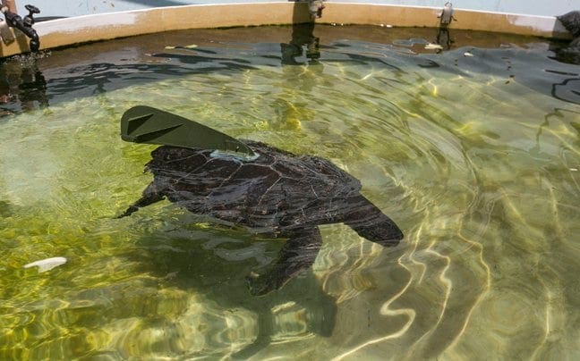 Επιβιώνει με ανθρώπινη παρέμβαση- Δείτε τις φωτογραφίες Τεχνητό πτερύγιο φέρει στην πλάτη του ο Hofesh, η