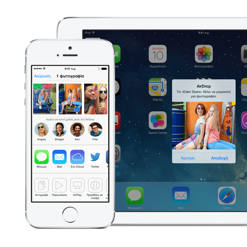 Με το AirDrop, μπορείτε να μοιράζεστε φωτογραφίες, βίντεο, ιστοσελίδες, τοποθεσίες και πολλά άλλα με άλλες κοντινές συσκευές