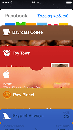 Το Passbook διατηρεί τις κάρτες επιβίβασης, τα εισιτήρια κινηματογράφου και τις δωροκάρτες σε ένα μέρος, ώστε να