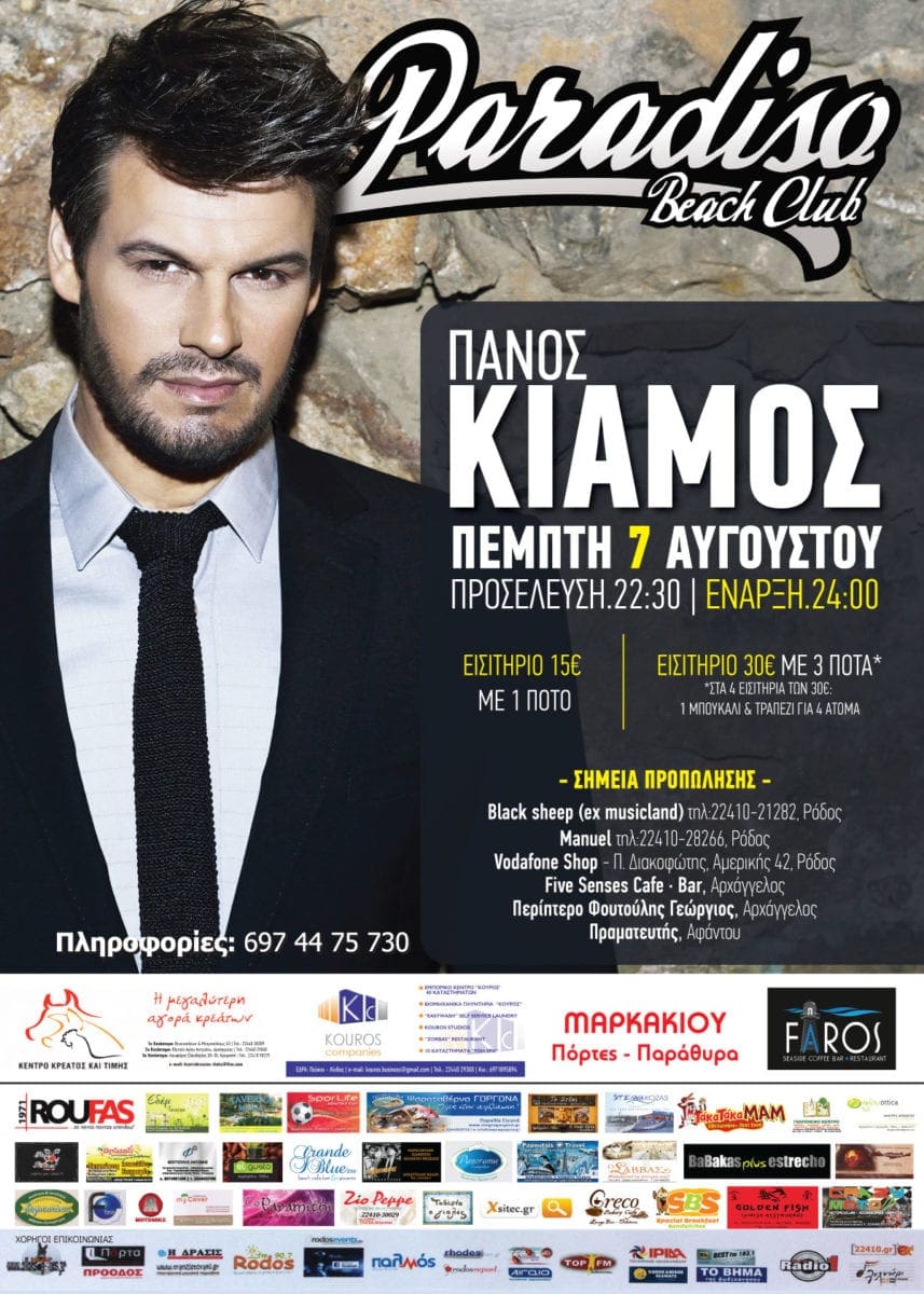 Ο Πάνος Κιάμος στη Ρόδο Paradiso Beach Club Πέμπτη 7 Αυγούστου 2014 O Πάνος Κιάμος, ο