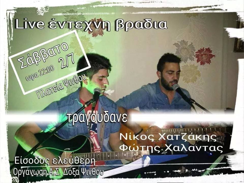 Ο ΑΣ ΔΟΞΑ ΨΙΝΘΟΥ- Σας καλεί στην συναυλία που θα πραγματοποιηθεί Σαββατο 2 Αυγούστου στις 22:00 στην
