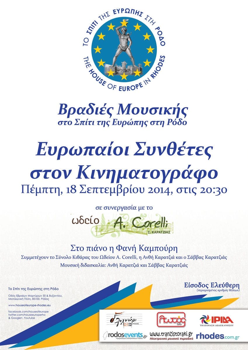 Το Σπίτι της Ευρώπης στη Ρόδο, σε συνεργασία με το Ωδείο A. Corelli, διοργανώνει μουσική βραδιά με