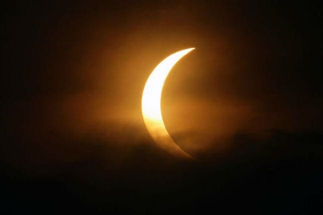Το εντυπωσιακό ουράνιο φαινόμενο της έκλειψης του Ηλίου, όπως συμβαίνει σήμερα, με τη σελήνη να επισκιάζει τον