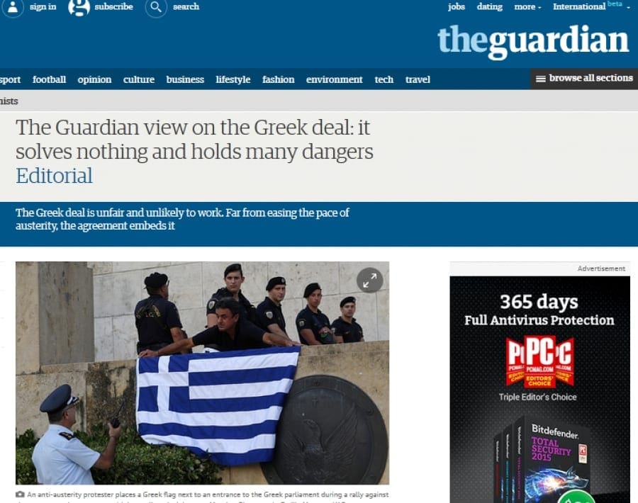 Η ελληνική συμφωνία είναι δυσλειτουργική, εμπεριέχει πολλά ρίσκα και είναι άδικη υποστηρίζει η βρετανική Guardian στο σημερινό