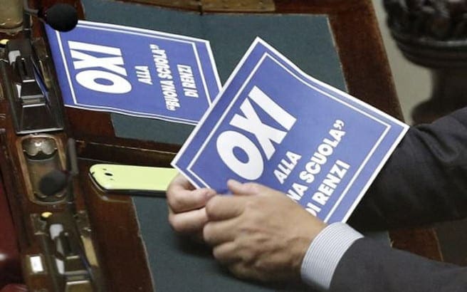 Βουλευτές του κόμματος «Αριστερά, Οικολογία και Ελευθερία» και της Λέγκας, σήκωσαν μικρές ταμπέλες σε γαλανόλευκο χρώμα, με