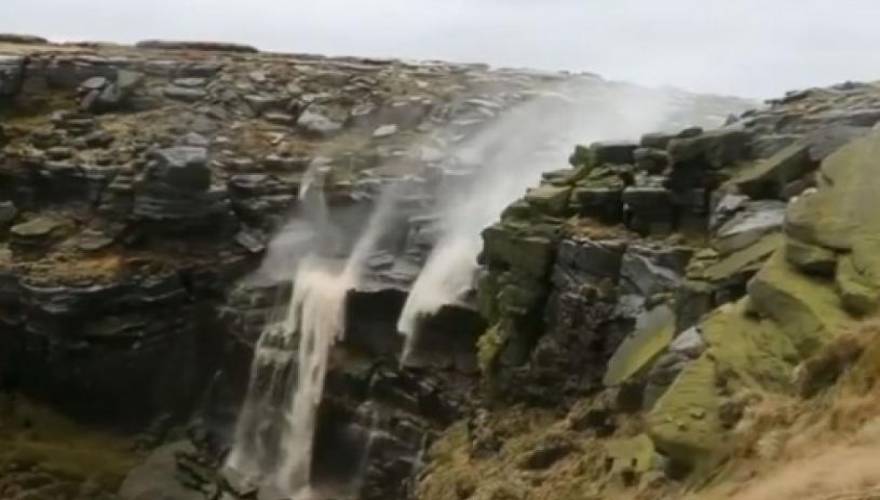 Ο καταρράκτης στο Ντέρμπισάιρ της Βρετανίας άρχισε να ρέει ανάποδα εξαιτίας ισχυρών ανέμων που πνέουν στην περιοχή