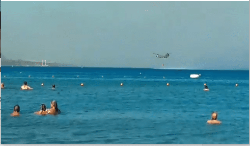 Ασταμάτητα τα ελικόπτερα και καναντερ σπεύδουν στις παραλίες για τον ανεφοδιασμό τους με νερό και επιστρέφουν στα
