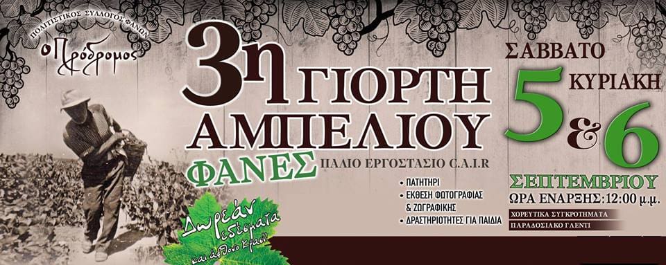 Ο Πολιτιστικός Σύλλογος Φανών ¨Ο ΠΡΟΔΡΟΜΟΣ ” σας προσκαλεί στην 3η Γιορτή Αμπελιού στις 5 & 6