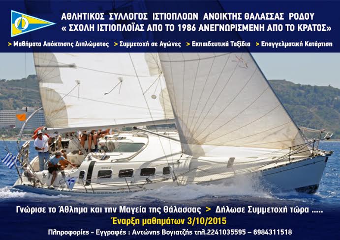 ΞΕΚΙΝΗΣΑΝ ΟΙ ΕΓΓΡΑΦΕΣ – Η ΜΟΝΗ ΑΝΑΓΝΩΡΙΣΜΕΝΗ ΣΧΟΛΗ ΙΣΤΙΟΠΛΟΙΑΣ ΑΝΟΙΚΤΗΣ ΘΑΛΑΣΣΑΣ ΣΤΗ ΡΟΔΟ Ξεκινάει στις 3 Οκτωβρίου,