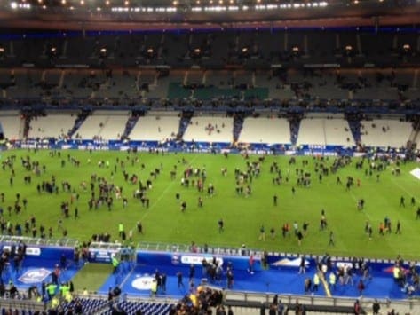 Οι παίκτες της Γαλλίας και της Γερμανίας που έδιναν φιλικό αγώνα (2-0 υπέρ των “μπλε”) στο Stade