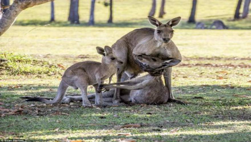 Μία ιδιαίτερα συγκινητική στιγμή κατέγραψε ο φωτογραφικός φακός στο Queensland της Αυστραλίας. Το αρσενικό καγκουρό φαίνεται να