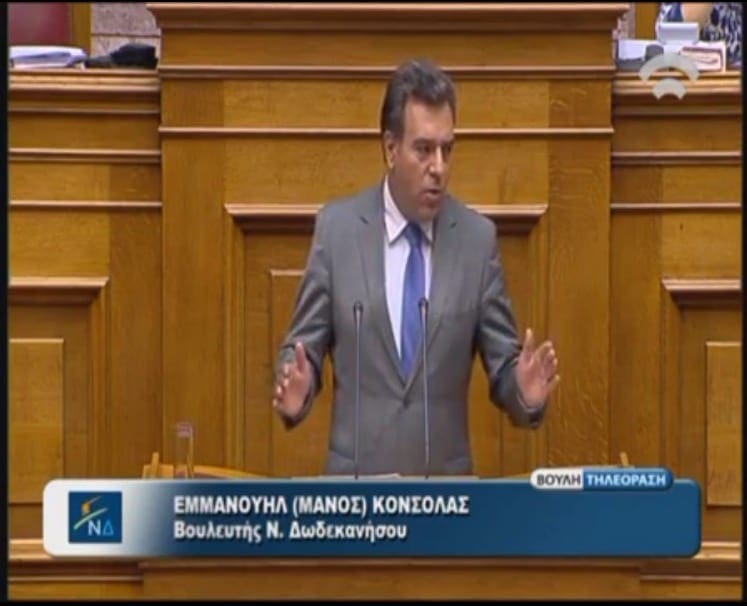 Έντονα επικριτικός ήταν ο Βουλευτής Δωδεκανήσου κ. Μάνος Κόνσολας, κατά τη διάρκεια της ομιλίας του στη Βουλή