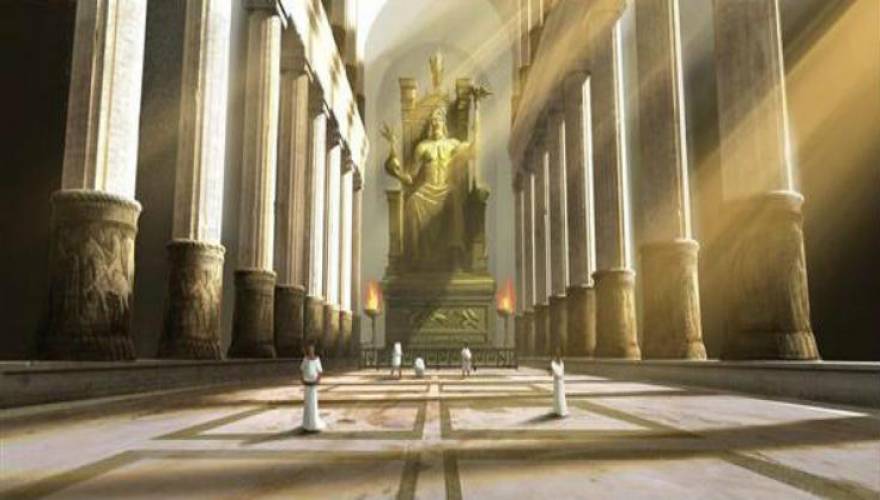 Το Χρυσελεφάντινο Άγαλμα του Ολυμπίου Διός, που φτιάχτηκε από τον Φειδία τον 5ο αιώνα π.Χ και δέσποζε στον