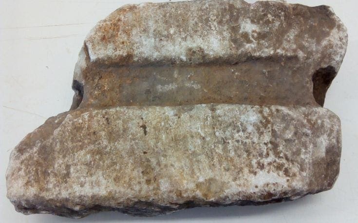 Θραύσμα από μαρμάρινο αγωγό που είχε αποσπαστεί από τον αρχαιολογικό χώρο της Αρχαίας Ολυμπίας και είχε εξαχθεί