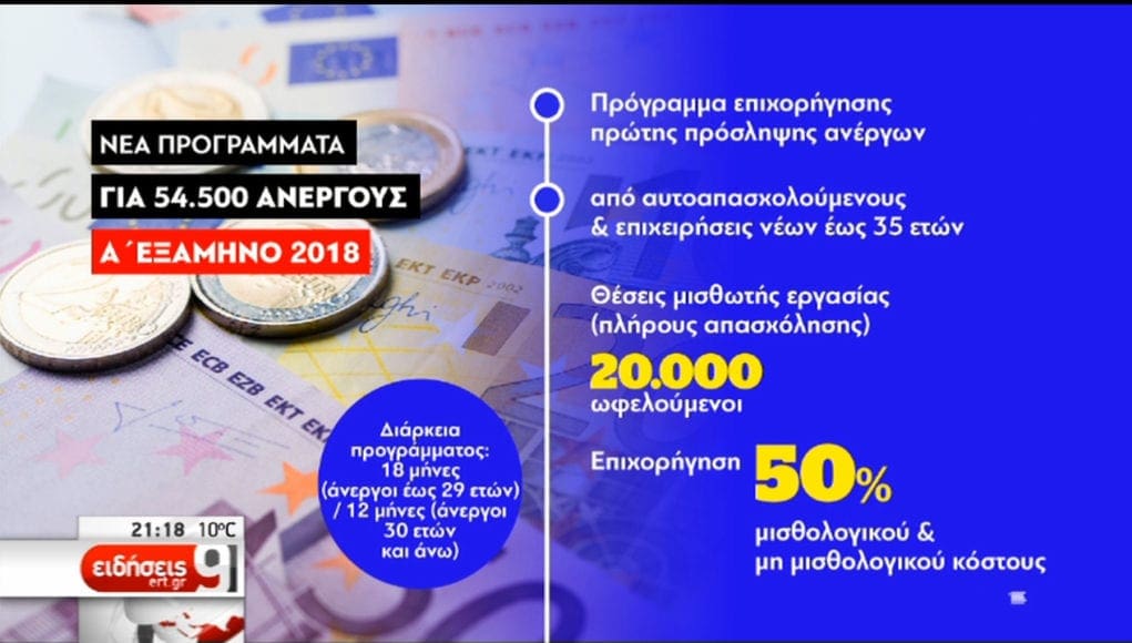 Πρόγραμμα επιχορήγησης της πρώτης πρόσληψης μισθωτών για 20.000 ανέργους Στις αρχές του 2018, θα ξεκινήσει το νέο