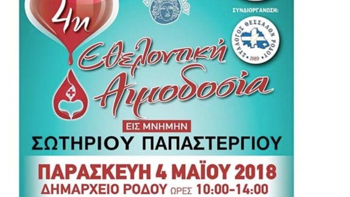 ια 4η χρονιά ο Σύλλογος Εθελοντών Αιμοδοτών Ρόδου Άγιος Εφραίμ και ο Σύλλογος Θεσσαλών Ρόδου, τιμώντας την