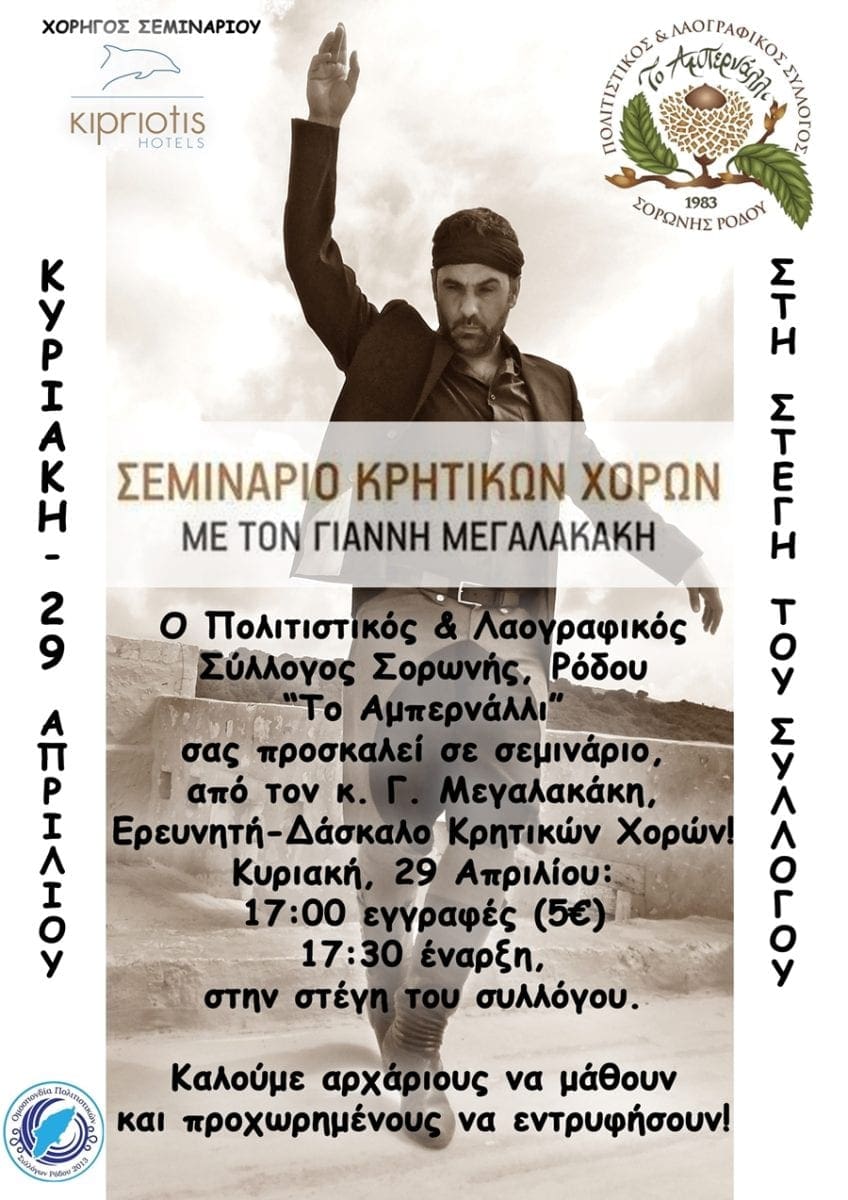 Σε ένα διαφορετικό σεμινάριο σας καλεί ο Πολιτιστικός και Λαογραφικός Σύλλογος Σορωνής Ρόδου «Το Αμπερνάλλι», ένα σεμινάριο