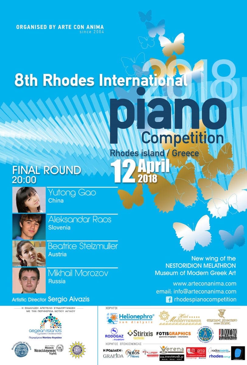 Στις 12 Απριλίου 2018 θα πραγματοποιηθεί η τελική φάση του 8ου Διεθνούς Διαγωνισμού Πιάνου Ρόδου στην Νέα Πτέρυγα του Νεστοριδείου Μελάθρου στις