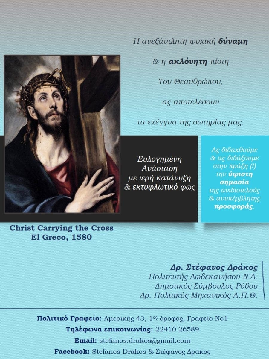 «Η ανεξάντλητη ψυχική δύναμη & η ακλόνητη πίστη Του Θεανθρώπου, ας αποτελέσουν τα εχέγγυα της σωτηρίας μας.