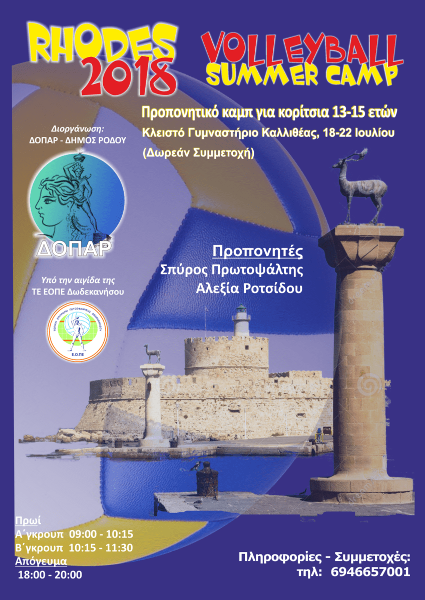 Ένα σπουδαίο και ιδιαίτερα επιμορφωτικό προπονητικό καμπ στο βόλεϊ, θα διοργανώσει ο Δημοτικός Οργανισμός Πολιτισμού Αθλητισμού Ρόδου