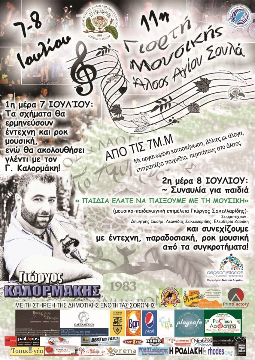 Έφθασε η ώρα της 11η Γιορτή Μουσικής που συνδιοργανώνει και φέτος ο Πολιτιστικός και Λαογραφικός Σύλλογος Σορωνής Ρόδου