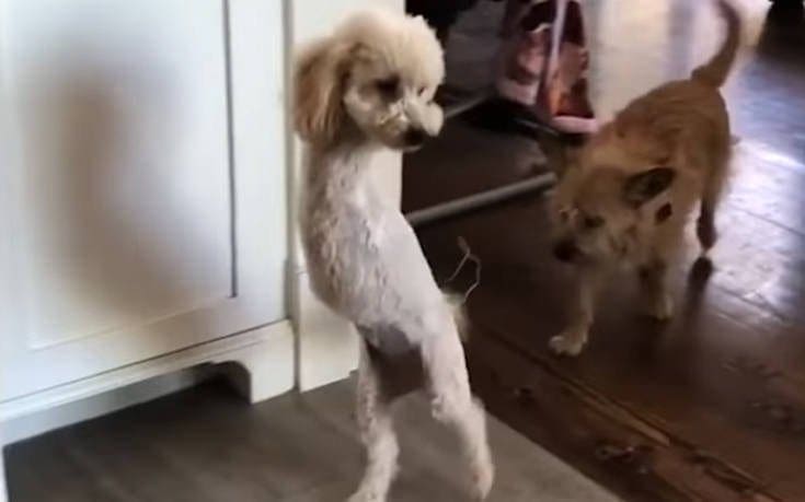 Ένα γενναίο σκυλάκι στο αξιαγάπητο βίντεο της ημέρας έχει μάθει να περπατά ως δίποδο, όταν το χτύπησε