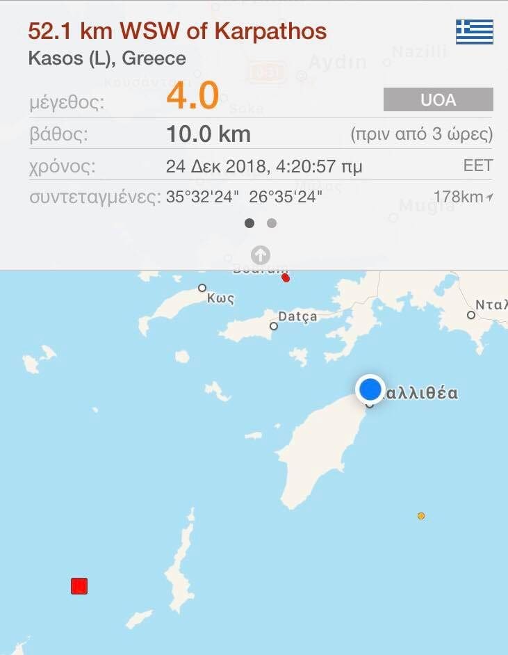Σεισμική δόνηση 4 βαθμών της κλίμακας Ρίχτερ σημειώθηκε σήμερα τις πρώτες πρωινές ώρες στην θαλάσσια περιοχή ανοιχτά