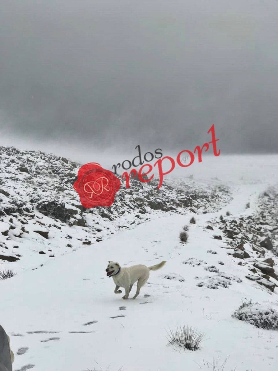 Στα άσπρα παραμένει και σήμερα ο Αττάβυρος καθώς συνεχίζεται η χιονόπτωση που ξεκίνησε χθές στο ψηλότερο βουνό