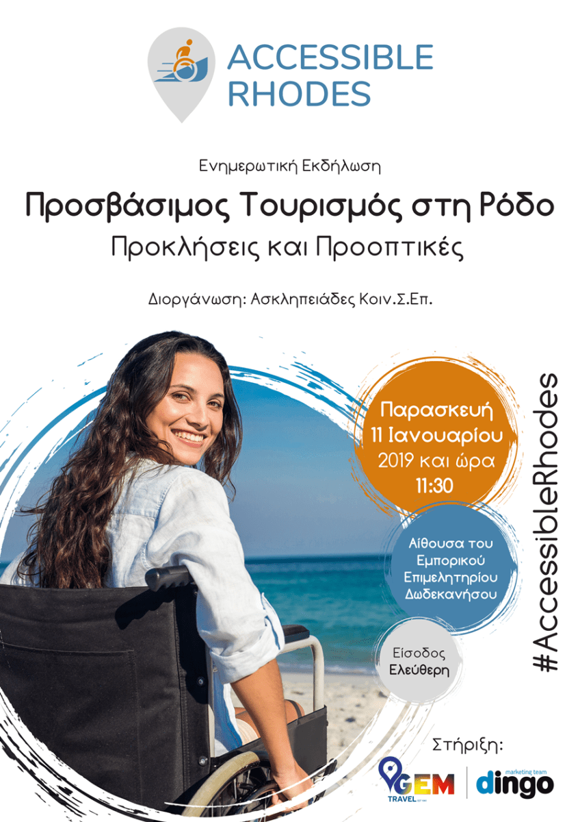 Η «Ασκληπειάδες Κοιν.Σ.Επ.», διοργανώνει ενημερωτική εκδήλωση με θέμα «Προσβάσιμος Τουρισμός στη Ρόδο – Προκλήσεις και Προοπτικές» την