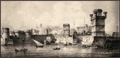 Η Ρόδος, επαρχία του Οθωμανικού κράτους, πρωτεύουσα του νησιωτικού συμπλέγματος, έδρα του Τούρκου διοικητή (βαλή) και βάση