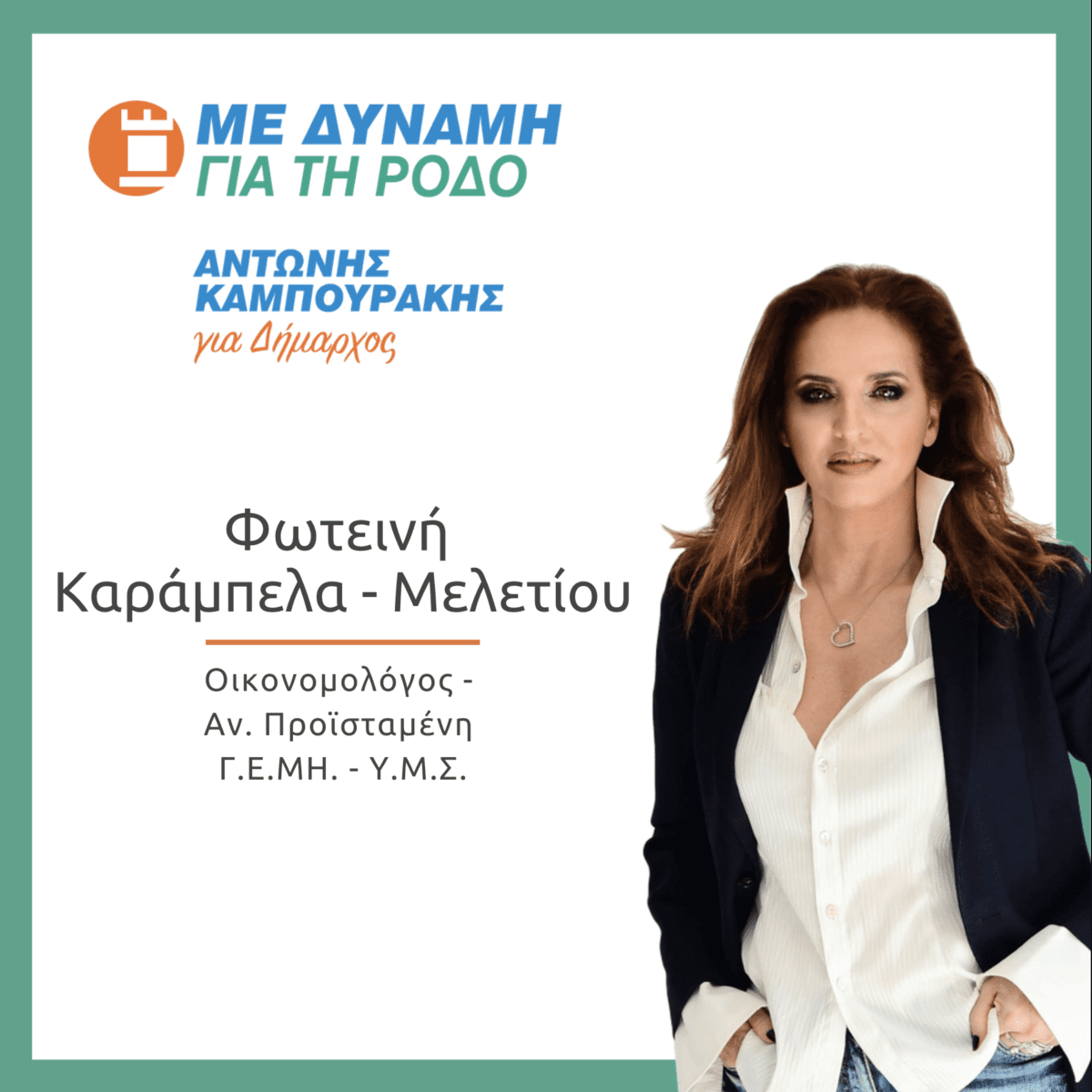 Ο υποψήφιος δήμαρχος Ρόδου Αντώνης Καμπουράκης δήλωσε: «Με χαρά καλωσορίζω τη Φωτεινή Καράμπελα στο συνδυασμό “Με Δύναμη
