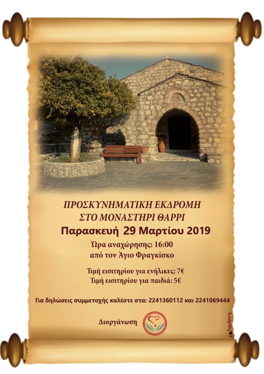 Ο Σύλλογος Εθελοντών Αιμοδοτών Ρόδου, σας προσκαλεί στην προσκυνηματική εκδρομή στο μοναστήρι Θάρρι την Παρασκευή 29 Μαρτίου