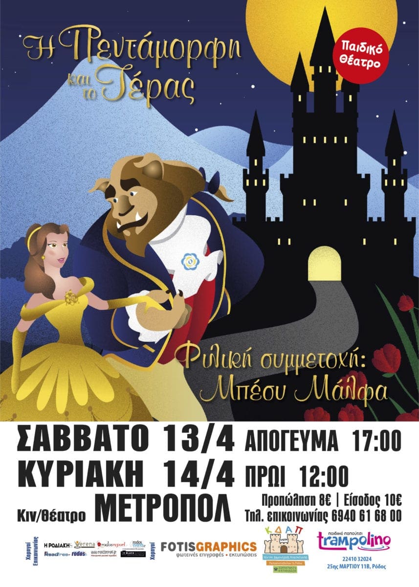 Η παιδική παράσταση Η Πεντάμορφη και το Τέρας με την φιλική συμμετοχή της Μπέσυ Μάλφα το Σάββατο