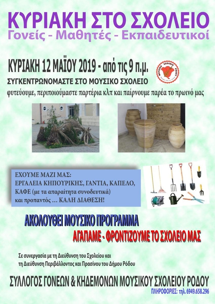 ΚΥΡΙΑΚΗ ΣΤΟ ΣΧΟΛΕΙΟ! Γονείς – Μαθητές – Εκπαιδευτικοί ΜΙΑ ΔΡΑΣΗ ΤΟΥ ΣΥΛΛΟΓΟΥ ΓΟΝΕΩΝ ΚΑΙ ΚΗΔΕΜΟΝΩΝ ΤΟΥ ΜΟΥΣΙΚΟΥ