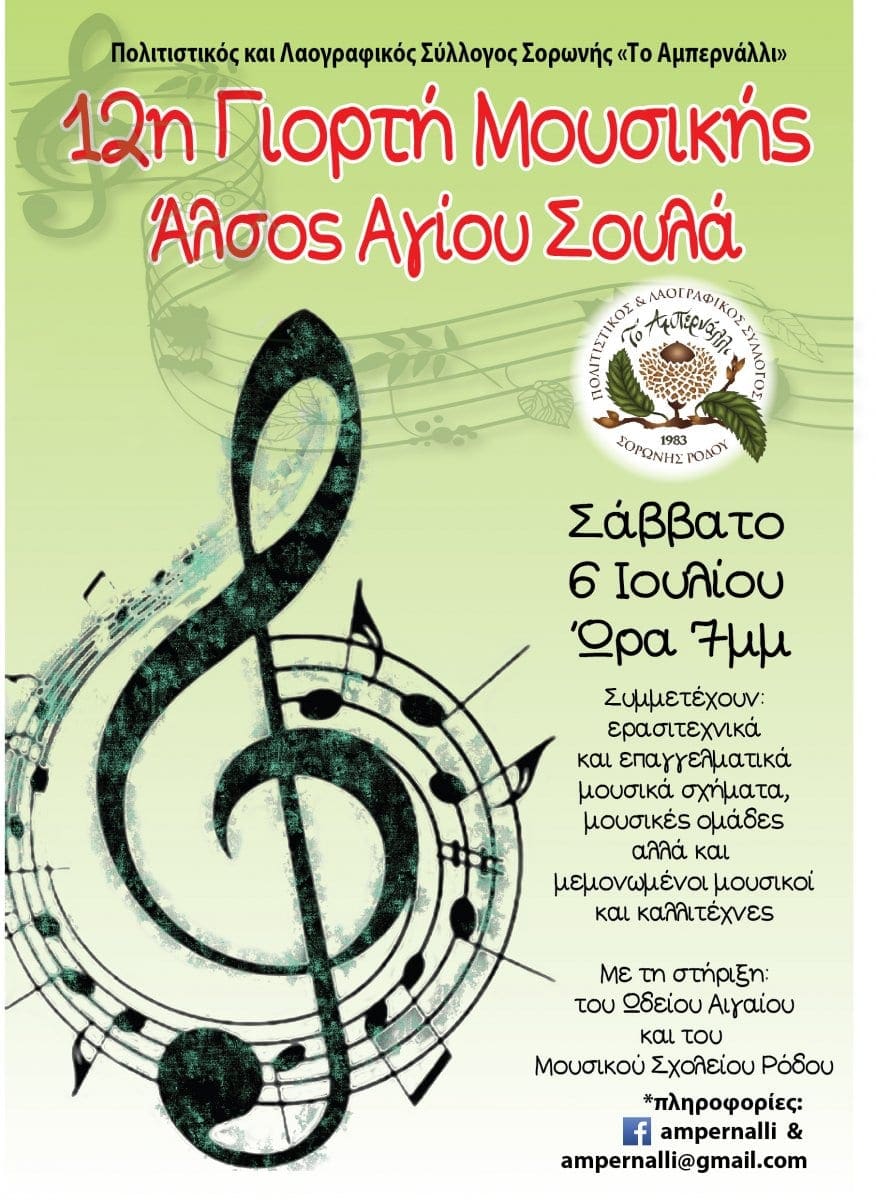 Η Γιορτή Μουσικής, ανοίγει τις εκδηλώσεις του Ιουλίου στο Άλσος Αγίου Σουλά. Το Σάββατο 6 Ιουλίου, ο