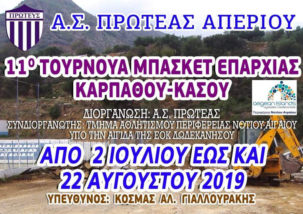 Η Περιφέρεια Νοτίου Αιγαίου συνδιοργανώνει με το Επαρχείο Καρπάθου – Κάσου το 11ο Τουρνουά Μπάσκετ του Αθλητικού
