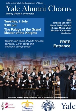 Ο Δήμαρχος Ρόδου κ. Φώτης Χατζηδιάκος σας προσκαλεί στην συναυλία της Yale Alumni Chorus υπό την Διεύθυνση