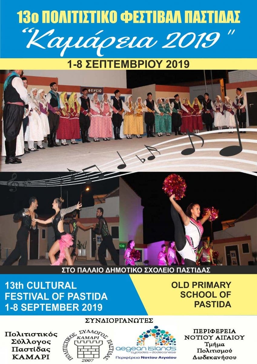 Ο Πολιτιστικός Σύλλογος Παστίδας Ρόδου «Καμάρι» σας προσκαλεί στο 13ο Πολιτιστικό Φεστιβάλ Παστίδας «Καμάρεια 2019» που συνδιοργανώνει