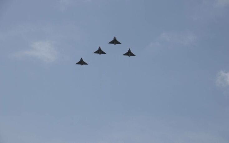 Με την πτήση μαχητικών Mirage και στρατιωτικών ελικοπτέρων ολοκληρώθηκε η λιτή κατάθεση στεφάνου στο μνημείο του Αγνώστου Στρατιώτη για