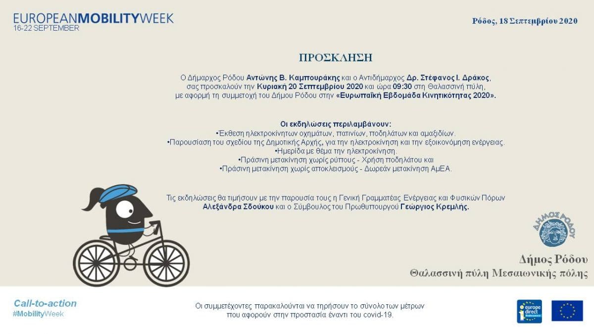 Με αφορμή τη συμμετοχή του Δήμου Ρόδου στην Ευρωπαϊκή Εβδομάδα Κινητικότητας 2020, με εκδηλώσεις που θα πραγματοποιηθούν