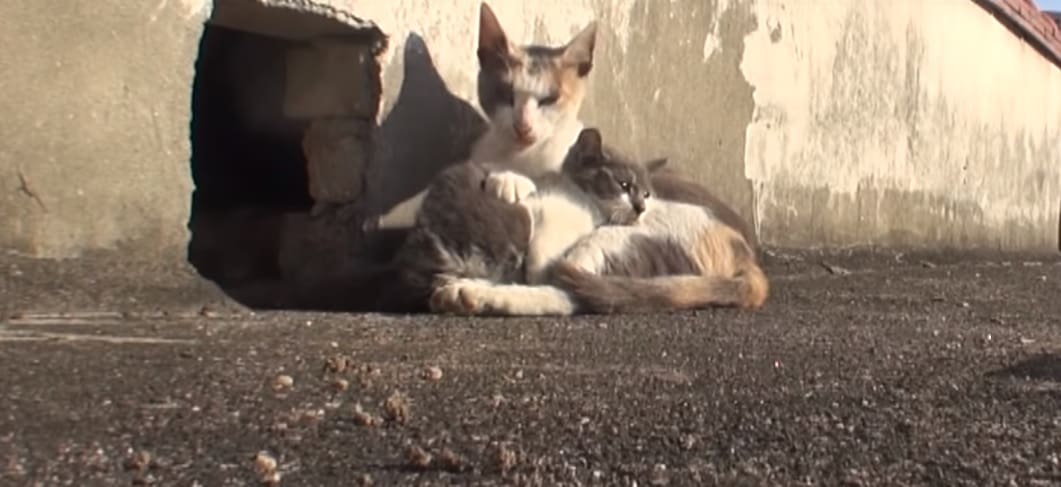 Ένα πολύ συγκινητικό βίντεο δείχνει μία αδέσποτη γατούλα που φροντίζει, προστατεύει και ταΐζει το ανάπηρο μωρό της. Όπως