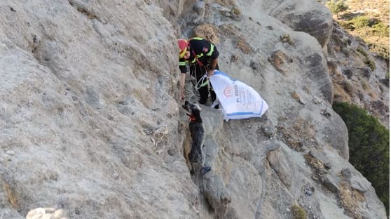 Ένα κυνηγόσκυλο που εγκλωβίστηκε σε γκρεμό και δεν μπορούσε να επιστρέψει, κλήθηκε να αντιμετωπίσει σήμερα η Πυροσβεστική