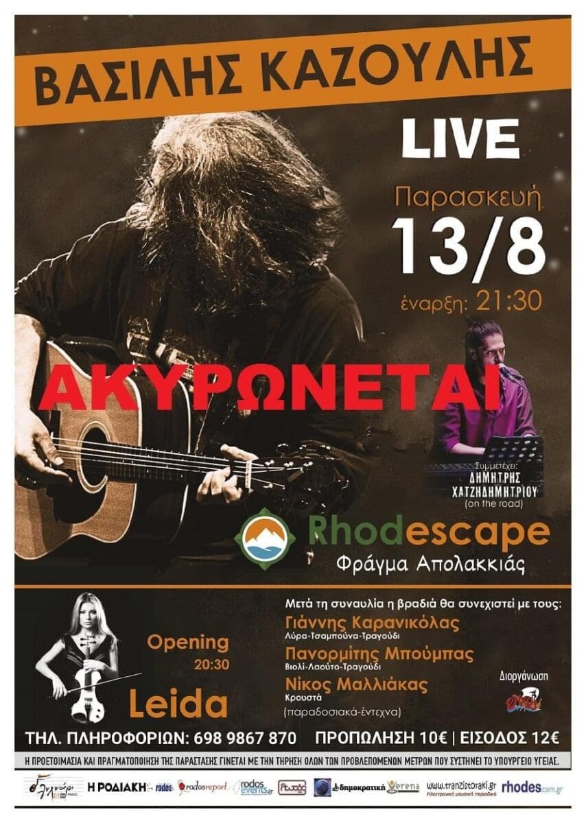 Στην Κρεμαστή Ρόδου το χρονικό διάστημα από 13 έως 23.08.2020 κατά τις ώρες από 19.00’ έως 01.00’