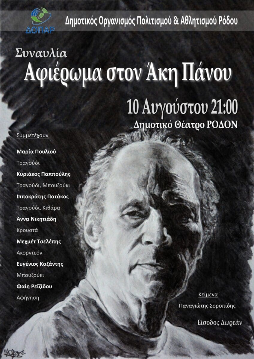 Μία μοναδική συναυλία – αφιέρωμα στο μεγάλο δημιουργό της λαϊκής μουσικής, Άκη Πάνου διοργανώνει ο Δημοτικός Οργανισμός
