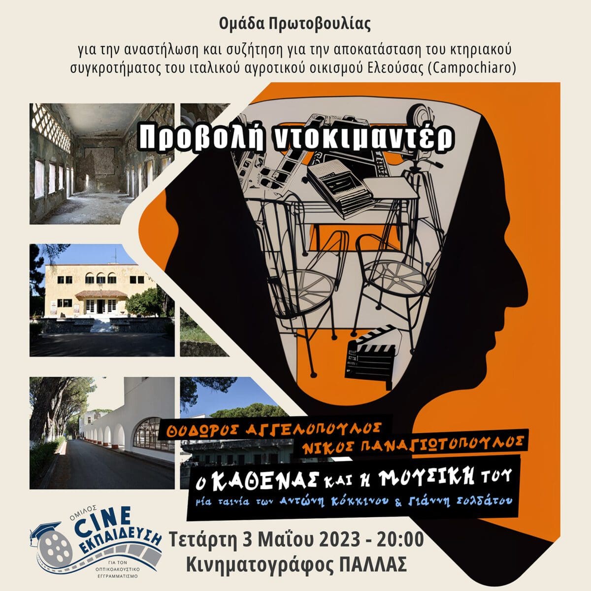 ΕΚΔΗΛΩΣΗ Τετάρτη 3 Μαΐου 2023, 20:00 Κινηματογράφος ΠΑΛΛΑΣ Προβολή ντοκιμαντέρ: «Θόδωρος Αγγελόπουλος – Νίκος Παναγιωτόπουλος: Ο καθένας και η