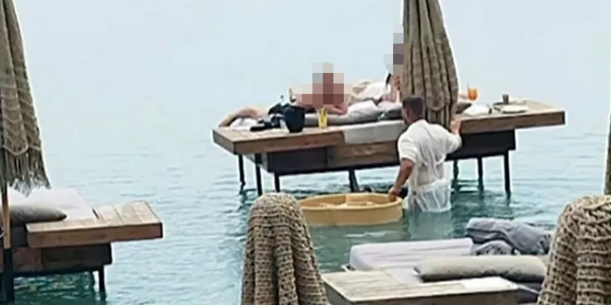Τουρίστες που απολαμβάνουν τον ήλιο και τη θάλασσα πάνω στις πλωτές εξέδρες στο νησί των Ιπποτών, τη