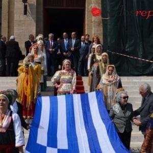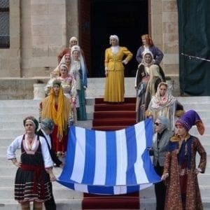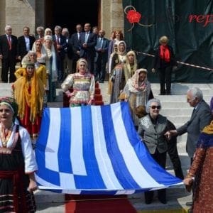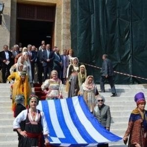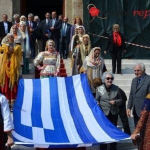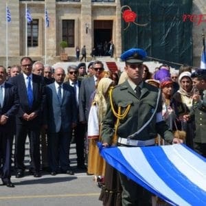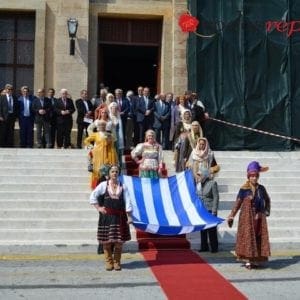 Την σημαία συνόδευσαν και δύο κυρίες οι οποίες ήταν και το 1947 στην πομπή η κα Κατίνα Αγιακάτσικα και κα Κουτσοδόντη Νίτσα!